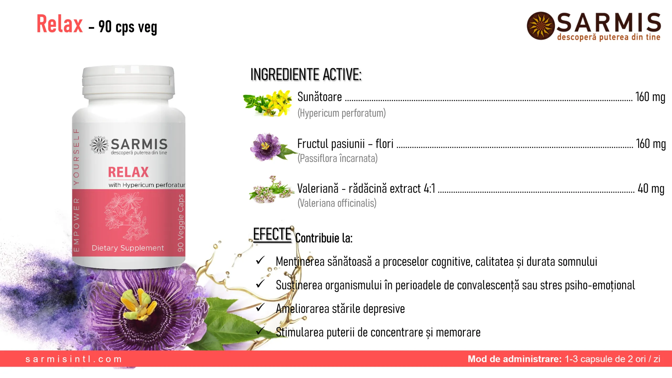 Valeriana - radacina (Valeriana officinalis), Sunatoare (Hypericum perforatum), Fructul pasiunii - flori (Passiflora incarcata)