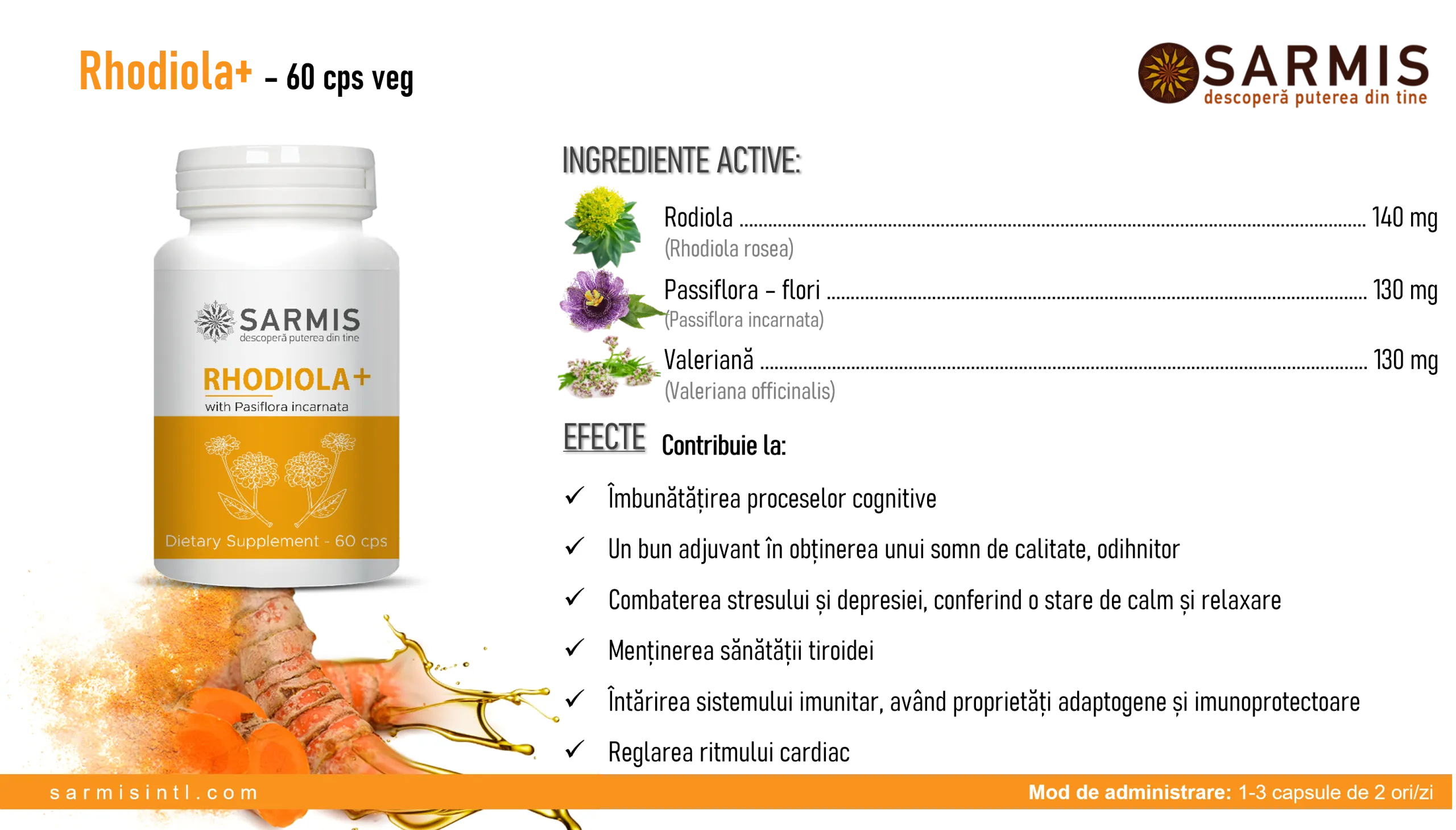 Rhodiola rosea - radacina, Valeriana - radacina (Valeriana officinalis), Passiflora - flori (Passiflora incarnata)