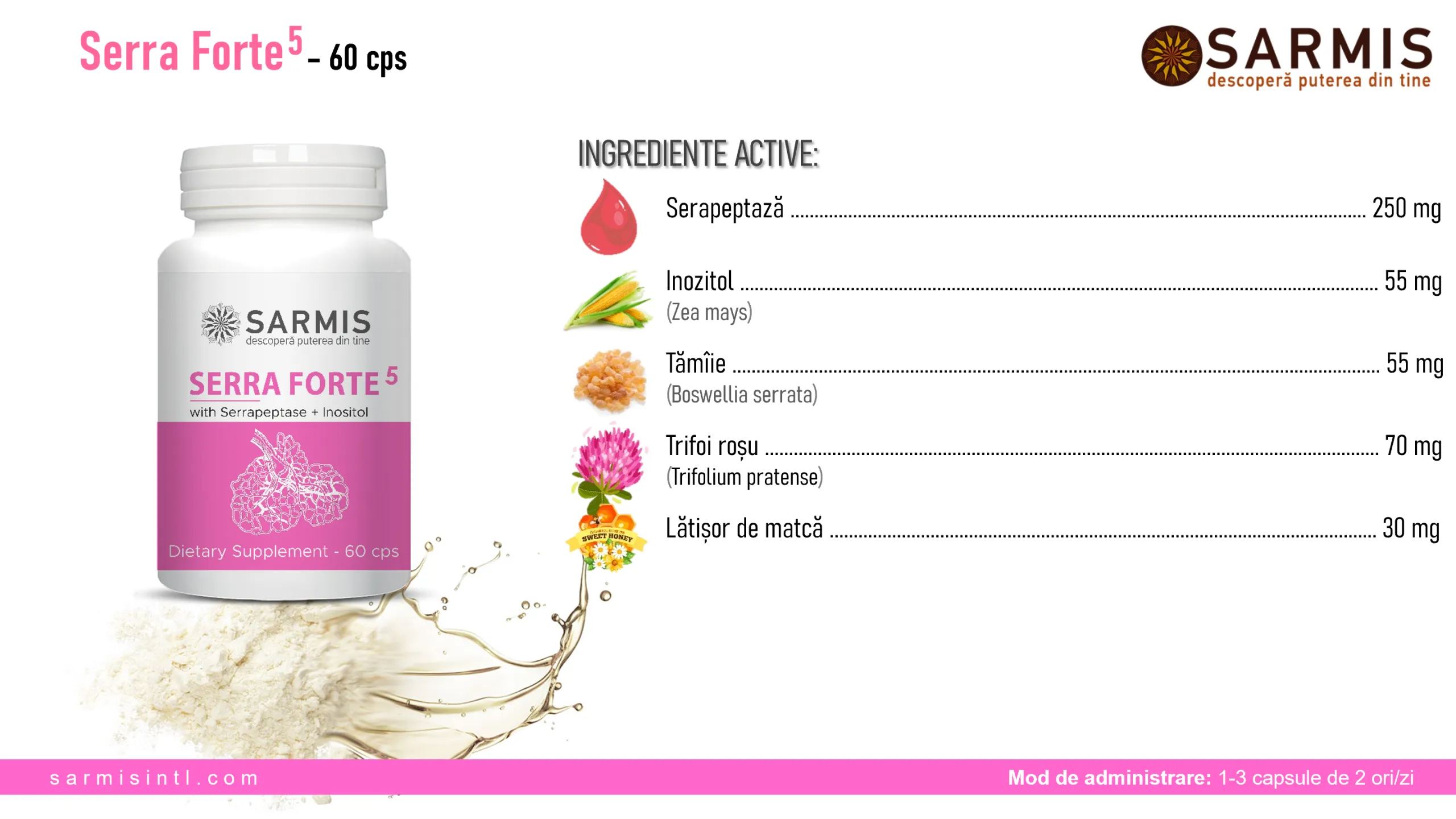 Tamaie (Boswellia serrata), Serapeptaza, Inozitol (Zea mays), Trifoi rosu (Trifolium pratense), Laptisor de matca